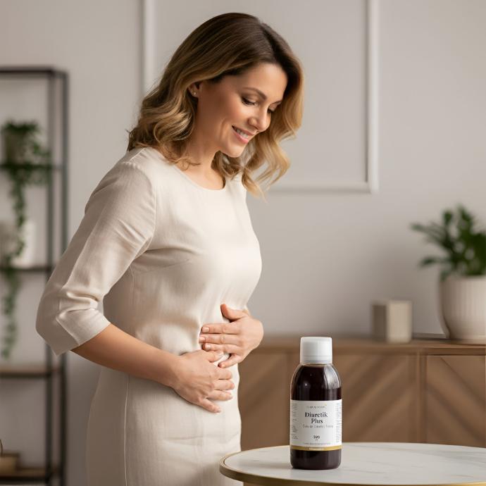 Favorece la eliminación del exceso de líquidos retenidos en el organismo, ayudando a reducir la sensación de hinchazón y el peso innecesario.